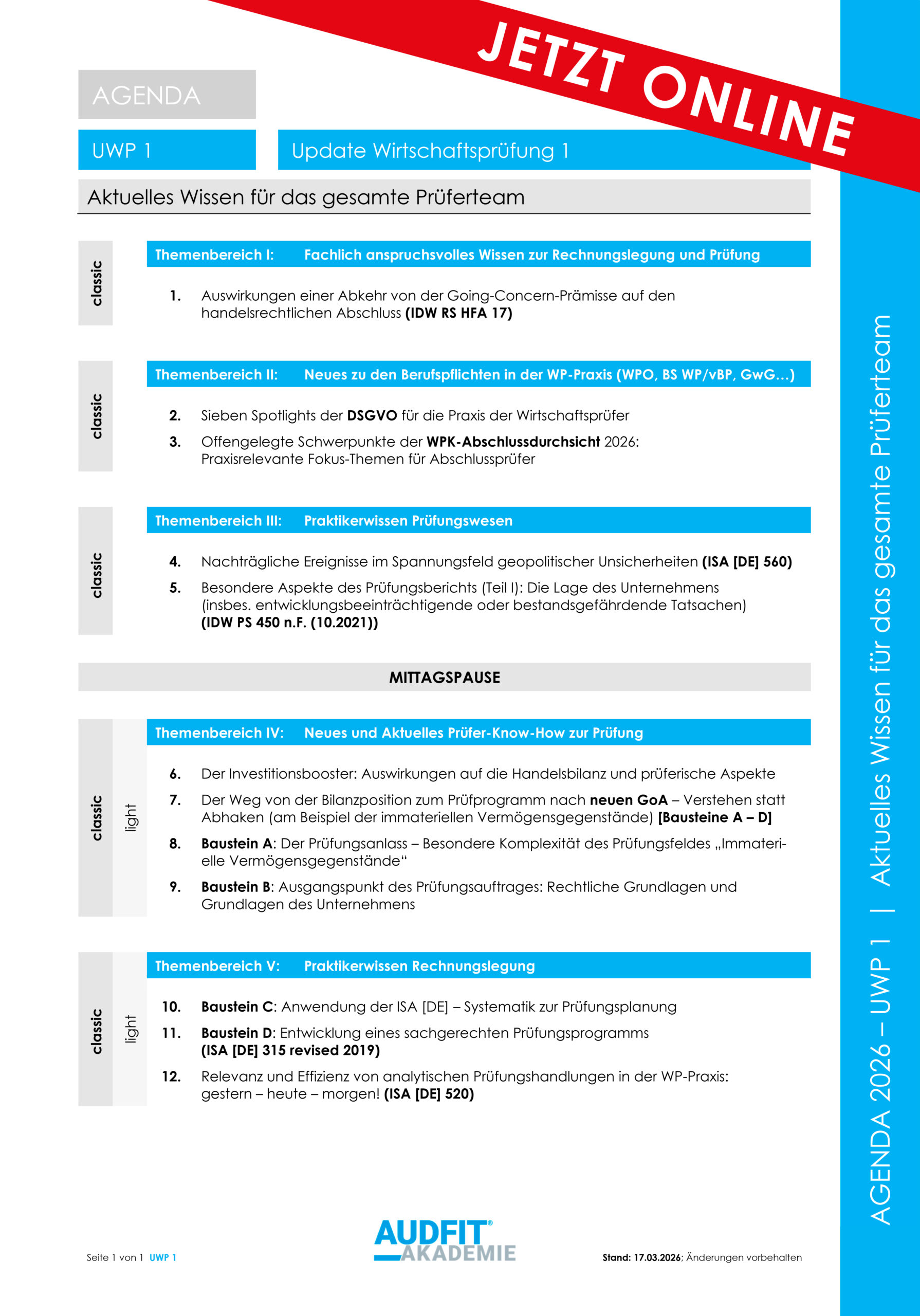 AUDFIT: Start unserer Reihe „Update Wirtschaftsprüfung 1 (UWP 1)“