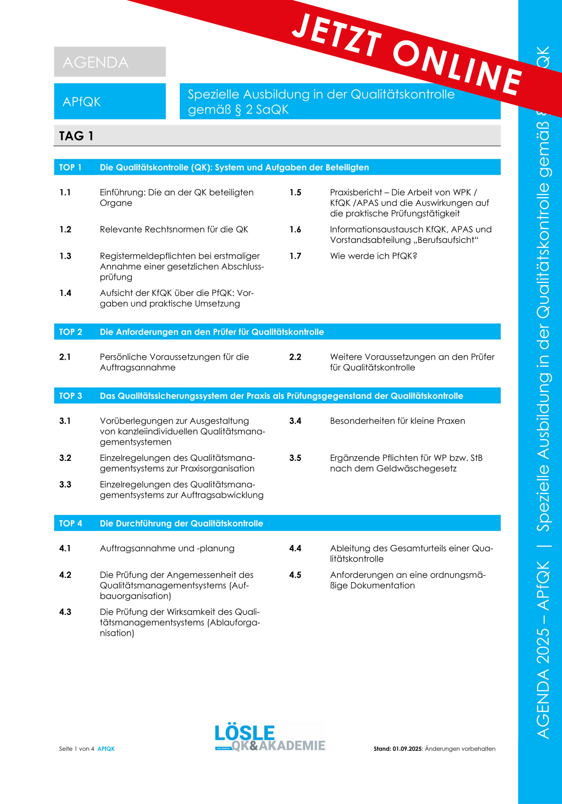 APfQK – Ausbildung Prüfer für Qualitätskontrolle