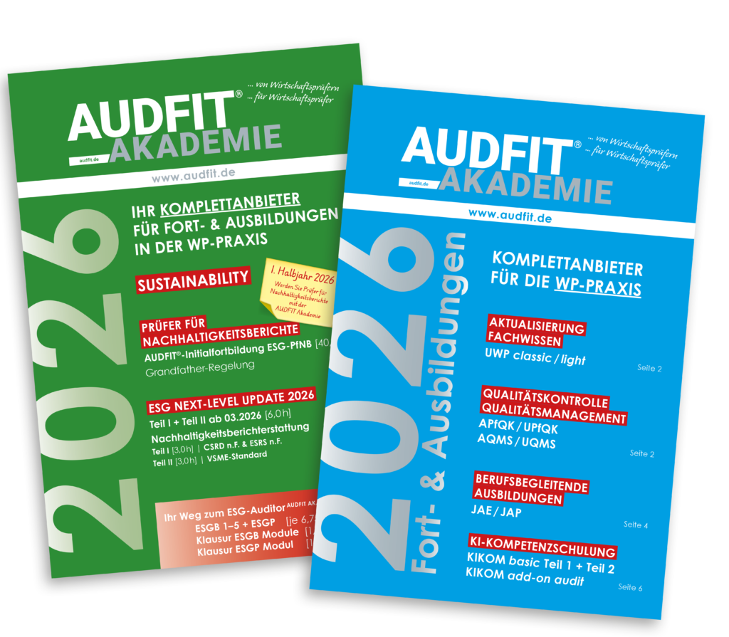 Wir freuen uns, Ihnen mitteilen zu können, dass unsere neuen Folder „AUDFIT Jahresprogramm 2026 ­ Fort- und Ausbildungen“ sowie „AUDFIT Sustainability“